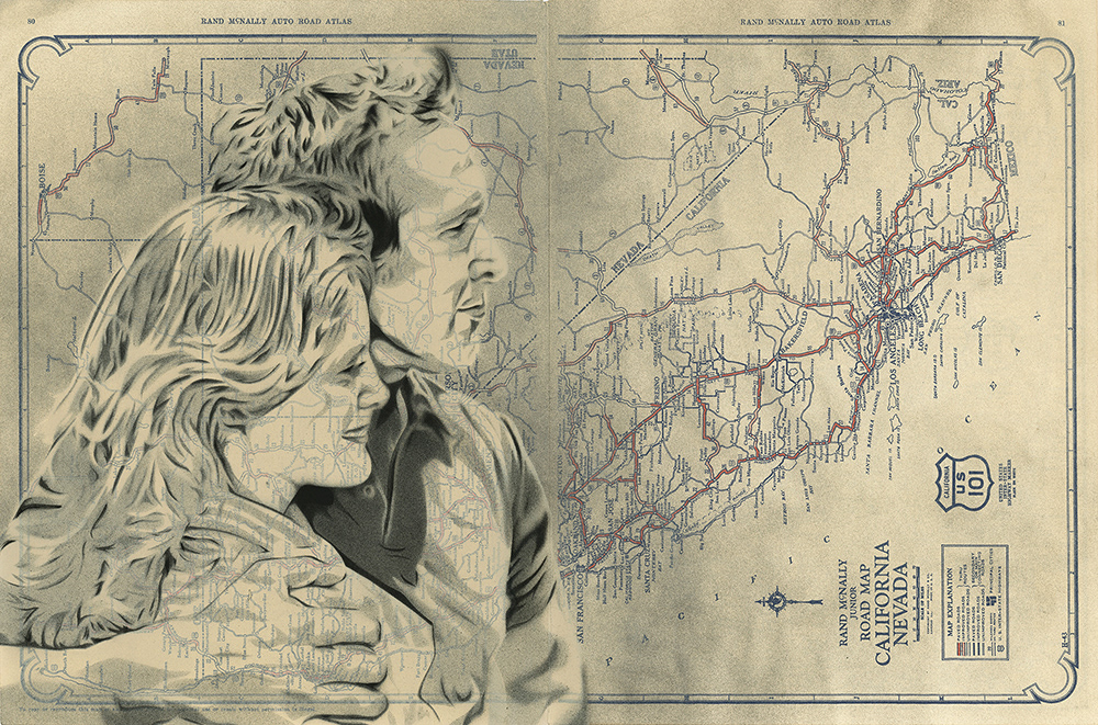 stencil and spray paint on vintage road map