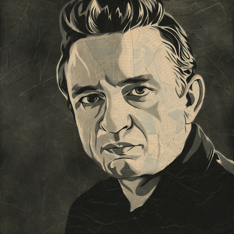 4-layer stencil, spray paint and collage on cradled panel