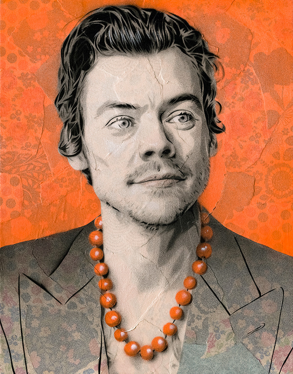 stencil, spray paint and collage on cradled panel
