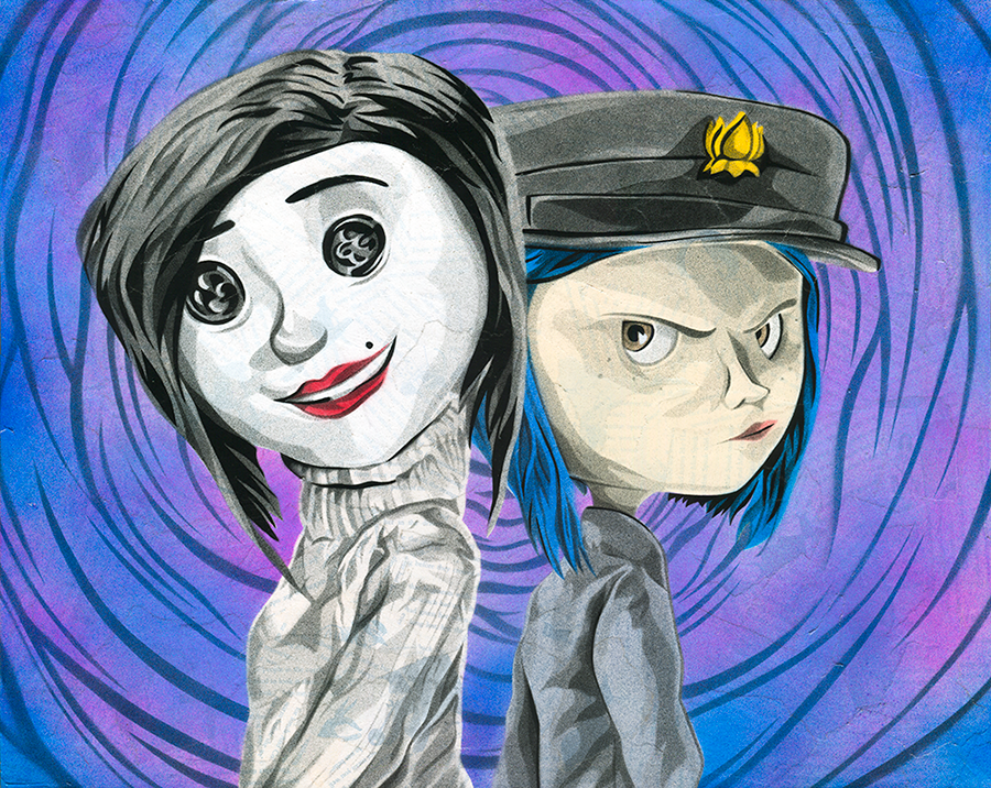 14-layer stencil, spray paint and collage on cradled panel